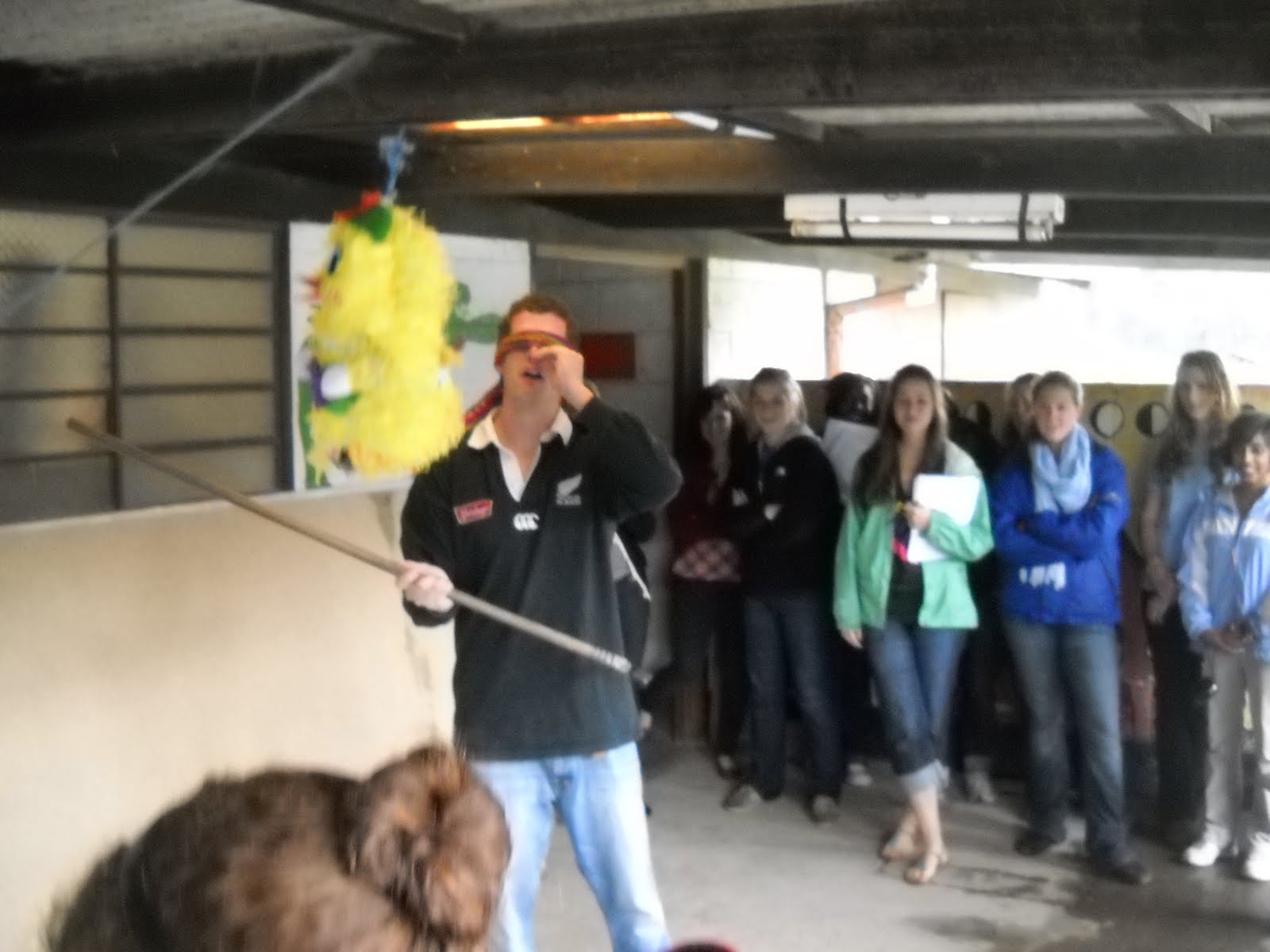 I must admit I was a bit timid in my whackings - the pole that I was given was at least three feet long and I was afraid of accidentally clubbing a co-worker. After the assistant clinic director, women's program assistant director, clinic doctor, and clinic director also unsuccessfully endeavored to break open the piñata, it fell to Scott to unleash the candy: